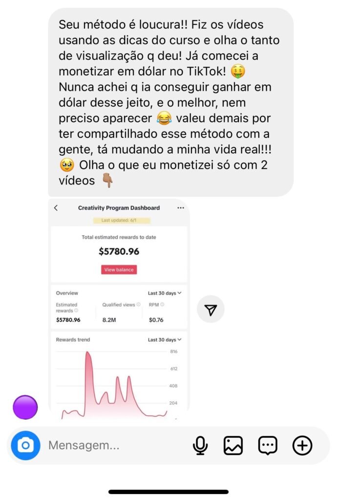 Vários alunos relatam ganhos consistentes aplicando as aulas. Há prints e vídeos de resultados no material oficial do curso.